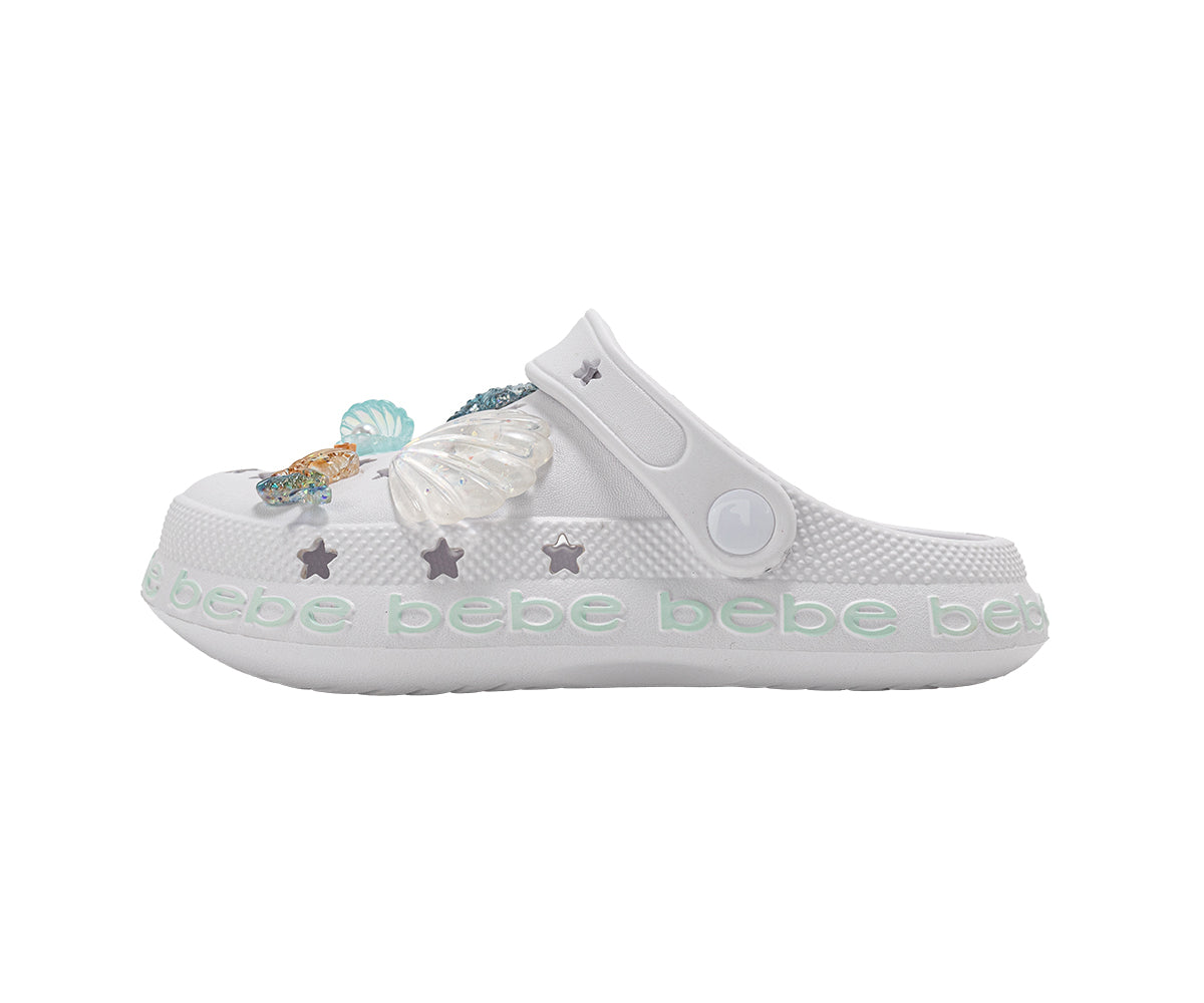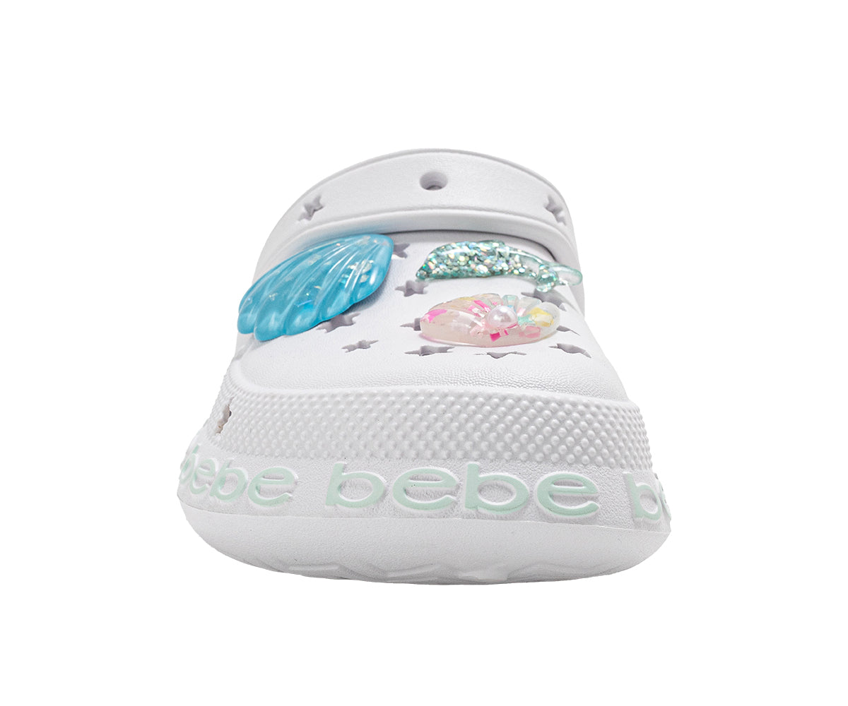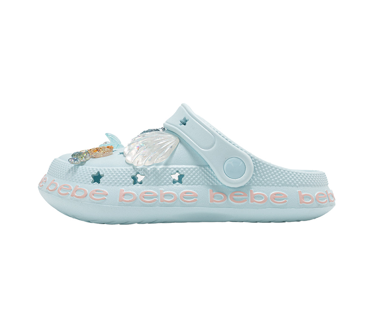 Splash into comfort with bebe Girl's Comfort EVA Clogs, featuring playful sea life charms and an easy slip-on design. Made from lightweight EVA, these comfy clogs offer Gentle support for everyday wear while adding fun, ocean-inspired style