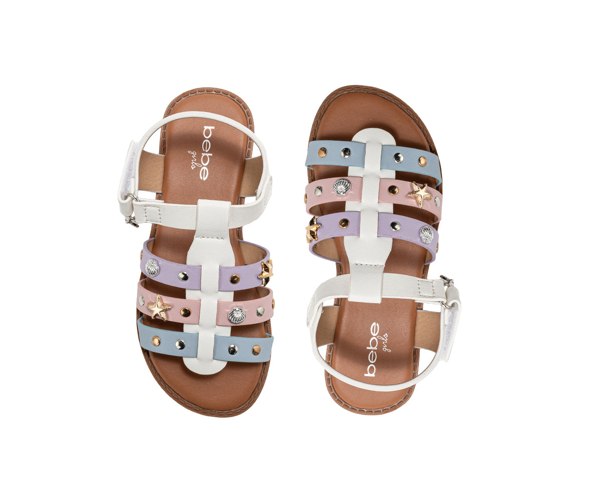 bebe Girl's Sandals – Strappy Flat Sandals and Studded Summer Shoes (Little Kid-Big Kid)